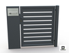 Jednotlivé žaluzie jsou široké 100 mm a viditelná vzdálenost mezi nimi je přibližně 25-30 mm. Tento poměr zajišťuje optimální rovnováhu mezi stíněním a lehkostí konstrukce a zdůrazňuje moderní charakter plotu.