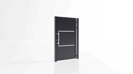 - Moderní branka z pozinkované, práškově lakované oceli s výplní ze styroduru v barvě RAL 7016. Profily 3 cm, mezera 0–2 cm, povrchová úprava Hairflon®. Včetně kliky nebo koule, záruka 10 let.
