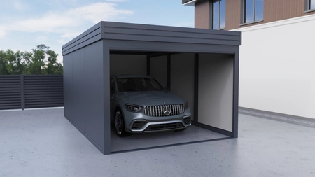 - Jednolodní garáž s PIR panely. Poskytuje vynikající tepelnou izolaci a ochranu vozidla. Robustní konstrukce s roletovými vraty. Ideální pro skladování zařízení citlivých na teplotu.