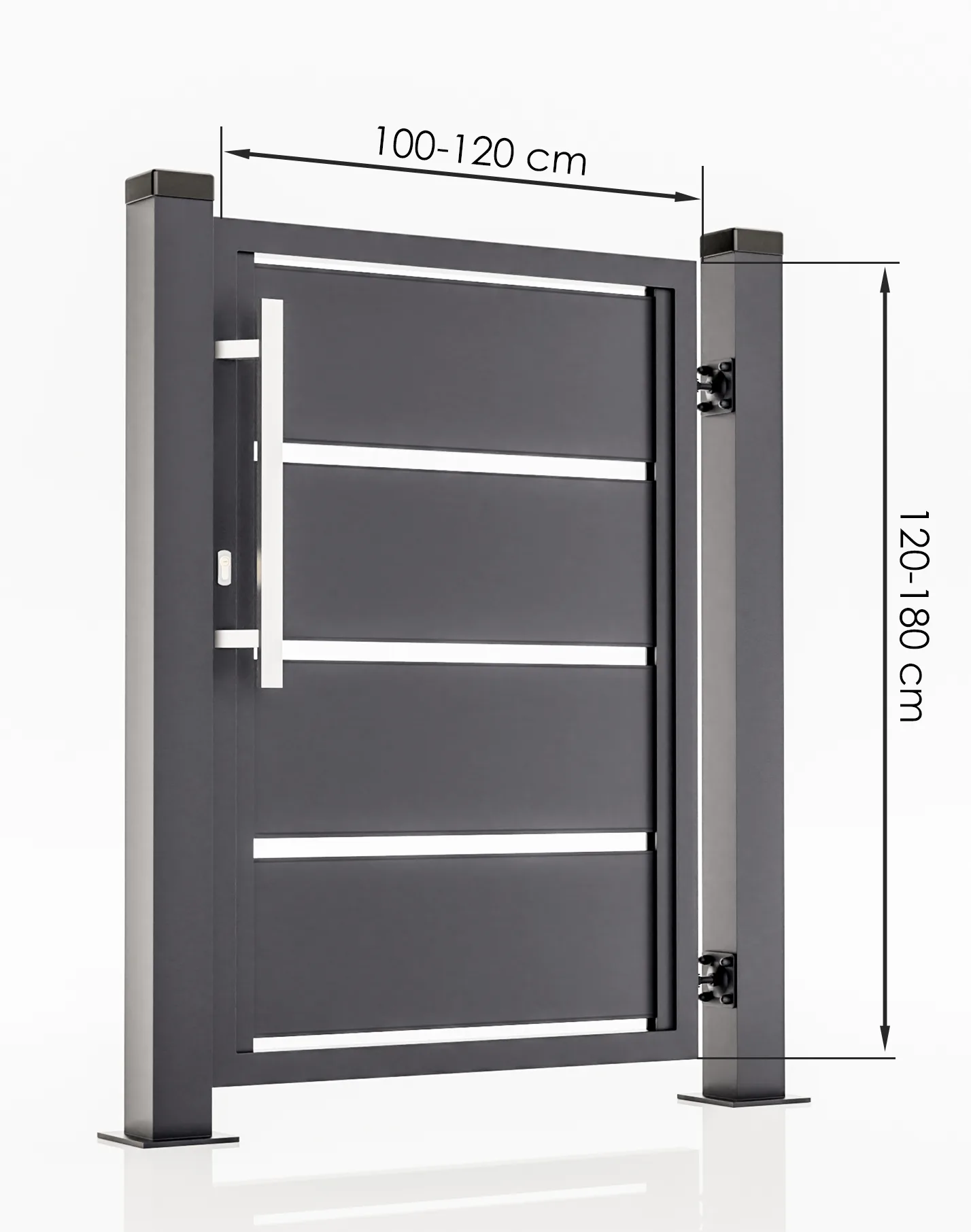 Jako výrobce nabízíme branky ve standardních velikostech: od 100 do 120 cm šířky a od 120 do 180 cm výšky. Je také možné vyrobit branku v nestandardní velikosti, přizpůsobené individuálním požadavkům a technickým podmínkám investice. Každý projekt je realizován s důrazem na funkčnost, trvanlivost a estetiku.