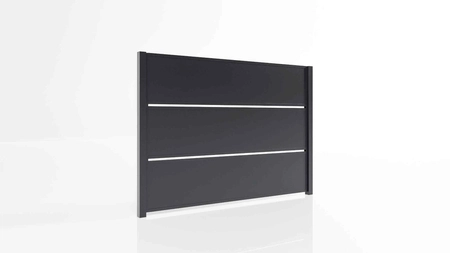 - Moderní plotové pole z pozinkované, práškově lakované oceli s výplní ze styroduru. Šířka lamel 3 cm, mezera 0–2 cm, povrchová úprava Hairflon®, barva RAL 7016. Záruka 10 let.