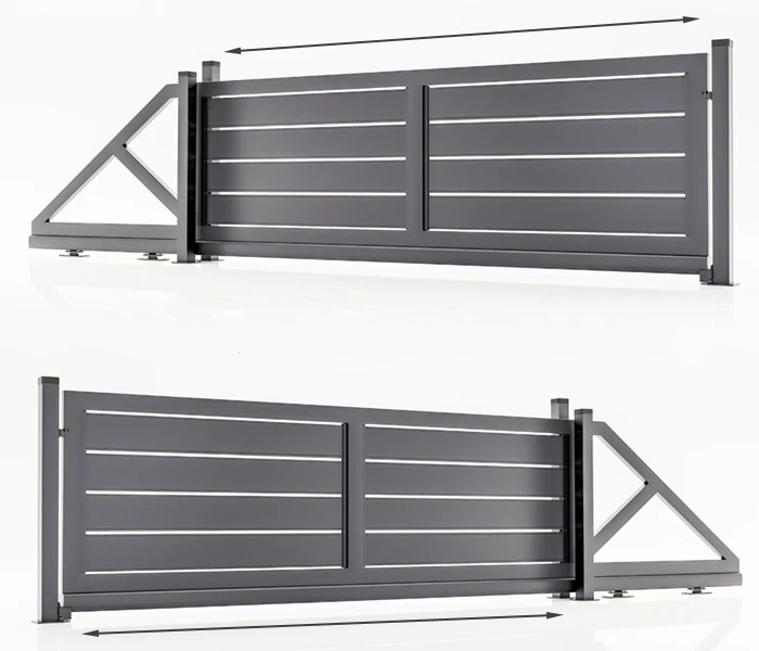 Posuvnou bránu lze navrhnout jako levostrannou nebo pravostrannou - směr otevírání se volí individuálně podle dispozic objektu a preferencí uživatele. Při otevírání se dveře vznášejí několik centimetrů nad úrovní terénu, což minimalizuje riziko kontaktu s terénními překážkami, jako je bláto, kamení, listí nebo sníh. Nedostatek kontaktu se zemí se projevuje ve větší odolnosti mechanismu a představuje významnou výhodu oproti kolejnicovým systémům.