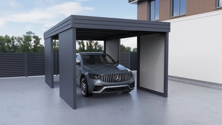Náš přístřešek pro auto účinně chrání váš vůz před přehřátím v horkých dnech a před sněhem v zimě. Čtyři stěny PIR panelů poskytují vynikající ochranu proti větru a vlhkosti, což výrazně prodlužuje životnost laku a minimalizuje riziko koroze. Nabízíme přístřešky pro jedno auto o šířce 300 až 500 cm a délce až 900 cm. Konečná cena závisí na zvolených rozměrech, místní sněhové zóně a konfiguraci stěny.