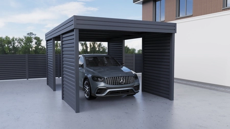 Důmyslná konstrukce přístřešku na auto účinně zabraňuje přehřívání vozidla v horkých dnech a v zimě chrání před sněhem. Čtyři žaluziové stěny poskytují dodatečnou bariéru proti větru a vlhkosti, což výrazně prodlužuje životnost laku a snižuje riziko koroze karoserie. Naše nabídka zahrnuje jednotlivé přístřešky pro auta o šířce 300 až 500 cm a délce až 900 cm. Cena závisí na zvolených rozměrech, místní sněhové zóně a konfiguraci stěny.