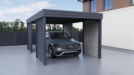 Náš přístřešek pro auto účinně chrání váš vůz před přehřátím v horkých dnech a před sněhem v zimě. Čtyři vlnité stěny poskytují vynikající ochranu proti větru a vlhkosti, což výrazně prodlužuje životnost nátěru a minimalizuje riziko koroze. Naše nabídka zahrnuje přístřešky pro auta o šířce 300 až 500 cm a délce až 900 cm. Cena závisí na zvolených rozměrech, místní sněhové zóně a konfiguraci stěny.