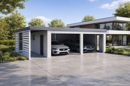 Zateplený přístřešek pro auto s vraty Hörmann