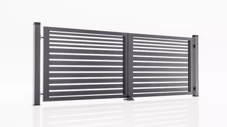 Das Drehtor ist die perfekte Lösung für schmale Eingänge und unregelmäßig geformte Grundstücke. Da er an den Seiten nicht viel Platz benötigt, ermöglicht er eine effiziente Nutzung der verfügbaren Fläche, ohne Kompromisse bei Funktionalität und Ästhetik einzugehen.