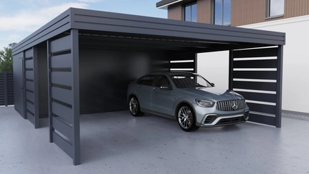 Doppelcarport + Abstellraum auf der Rückseite PIR - 4x Modern+ Wand