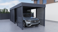 Einzelcarport + Abstellraum auf der Rückseite - Wellblech- 4x Palisade Wand