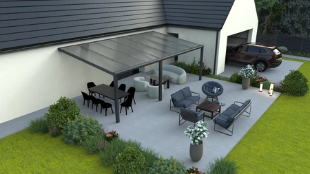 Ergänzen Sie Ihren Außenbereich mit einer einzigartigen Terrassenüberdachung aus hochwertigem Aluminium. Mit einer großen Auswahl an Stilen, Farben und Dachformen ist es einfach, eine Terrasse zu schaffen, die perfekt zur Architektur Ihres Hauses und zum Charakter Ihres Gartens passt. Entscheiden Sie sich für Eleganz, Langlebigkeit und Komfort - ein Baldachin, der nicht nur schützt, sondern auch erfreut. Ihre Traumterrasse wartet darauf, realisiert zu werden!