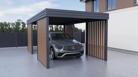 Wiata garażowa na jedno auto - 4x ścianka Horyzontal ZŁOTY DĄB Pion