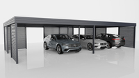 - Wiata garażowa z tylnym magazynkiem w formie zamkniętego modułu. Całość wykonano z ocynkowanej ogniowo stali, malowanej proszkowo, co zwiększa odporność na czynniki atmosferyczne i eliminuje potrzebę dodatkowej konserwacji.
