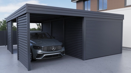 Wiata z Garażem FALA - 2x ścianka żaluzja premium